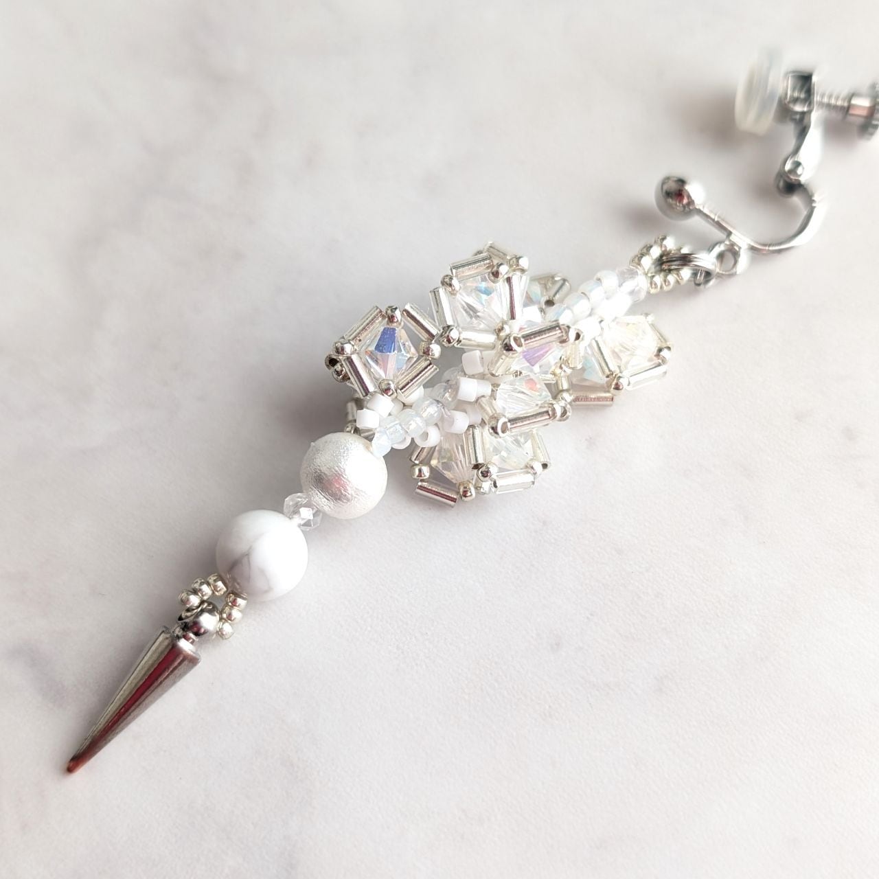 使用素材‥ガラスビーズ、竹ビーズ、天然石(ハウライト)、メタルビーズ、コットンパール