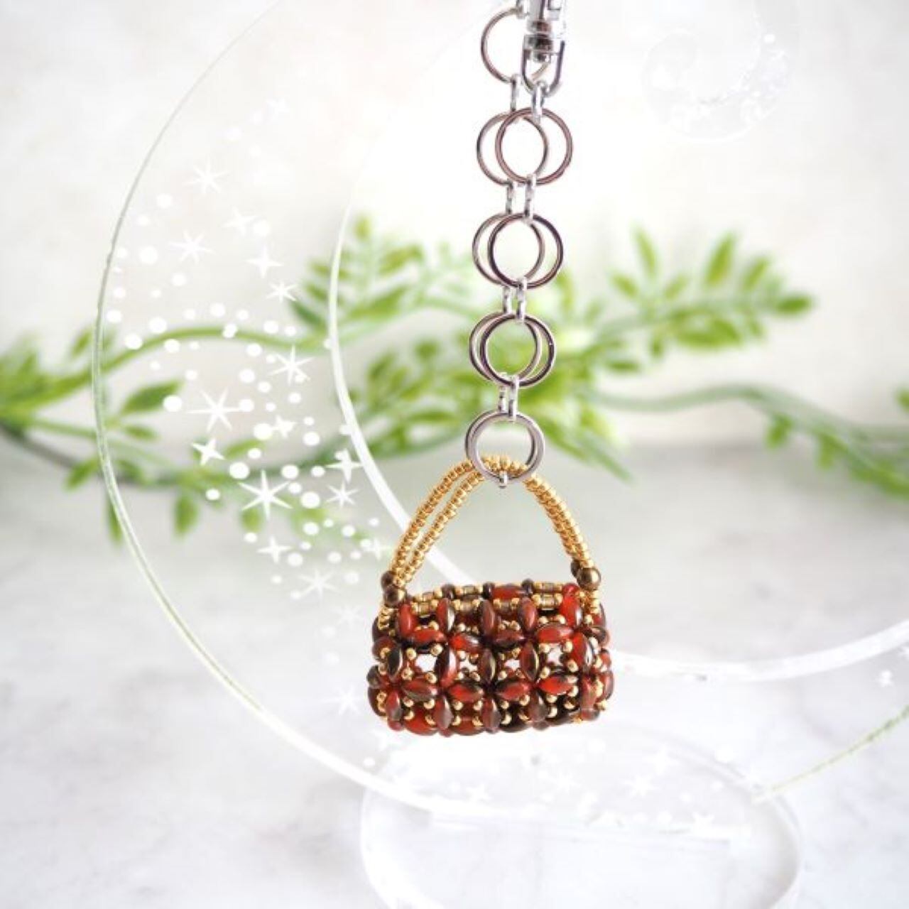 ツインビーズで作るバッグチャームです。
