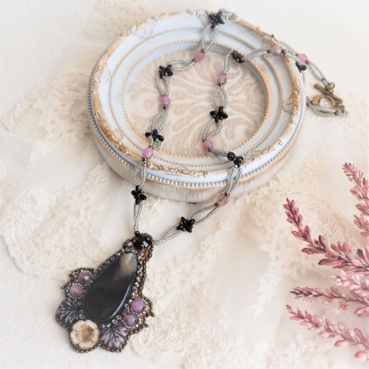 ドロップの周囲はフレーミングではなく、飾りで囲んでいるので、フレーミングをしたことがない人にも、作りやすいキットになっています。