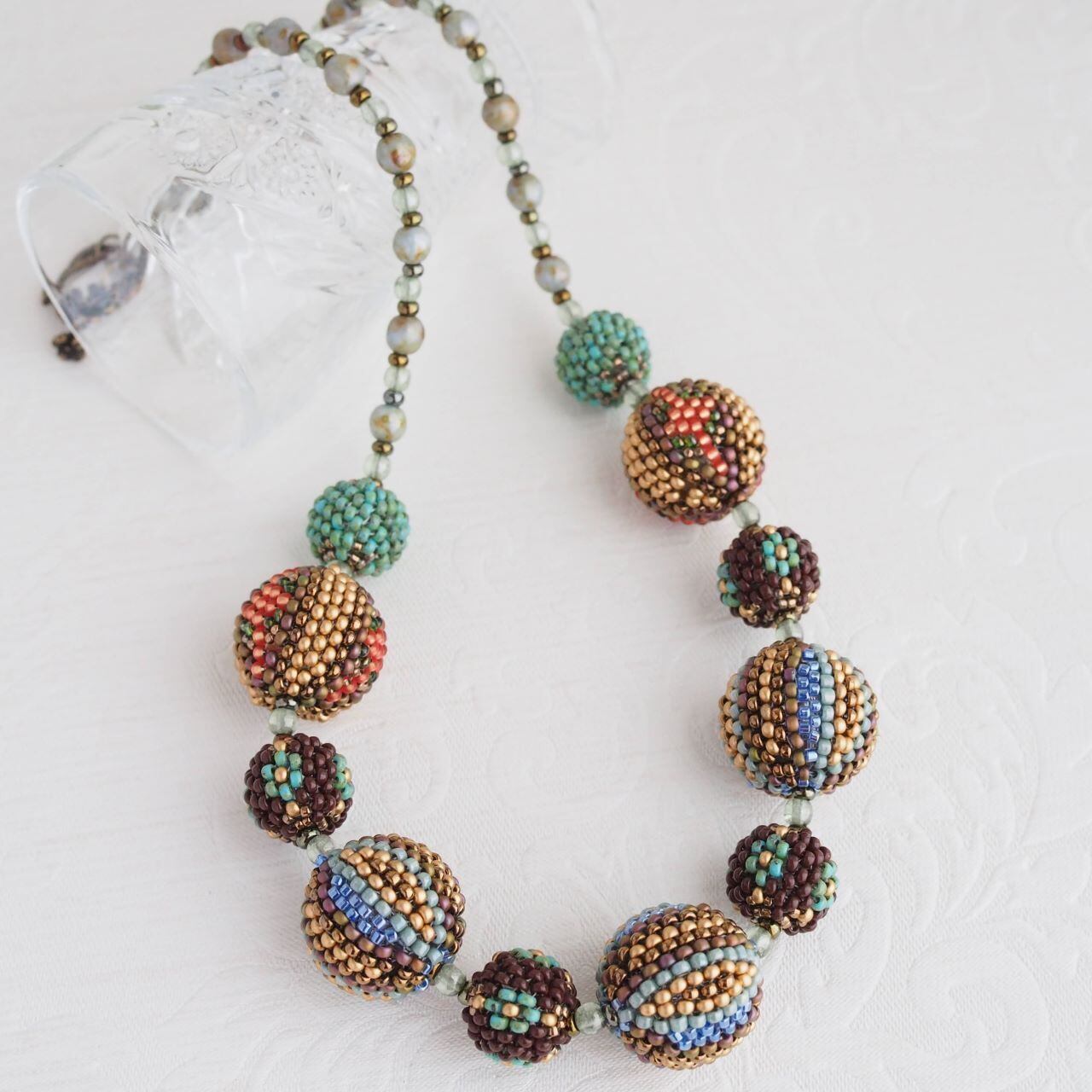 ペヨーテステッチで編む、カラフルなビーズボールです。
