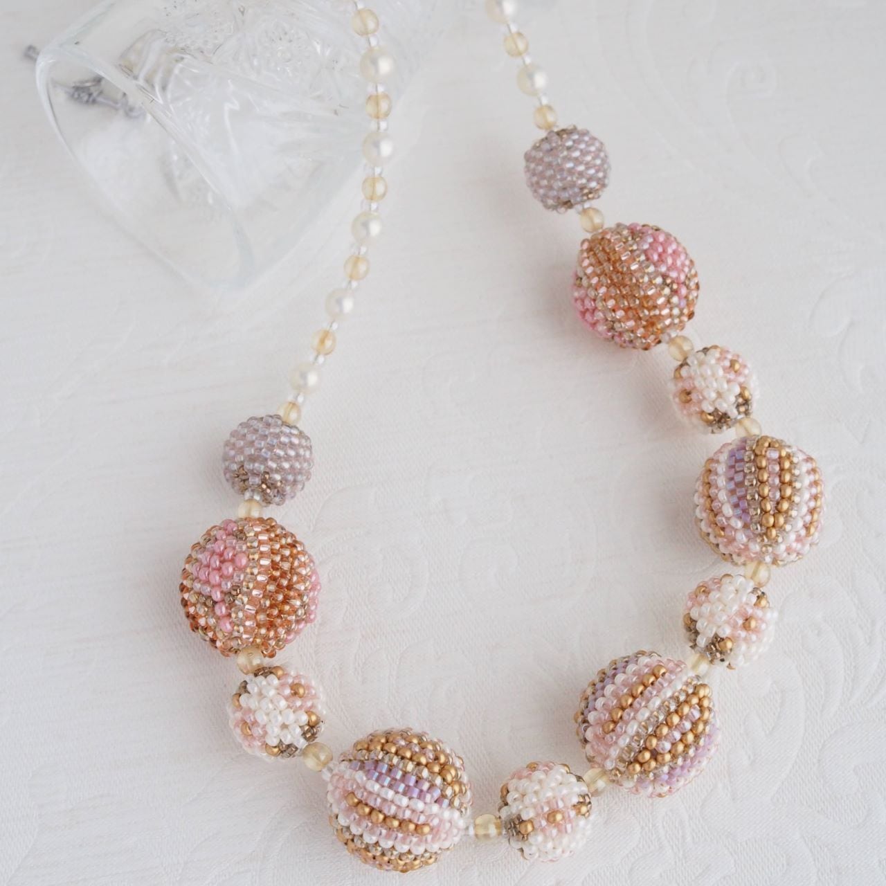 ペヨーテステッチで編む、カラフルなビーズボールです。
