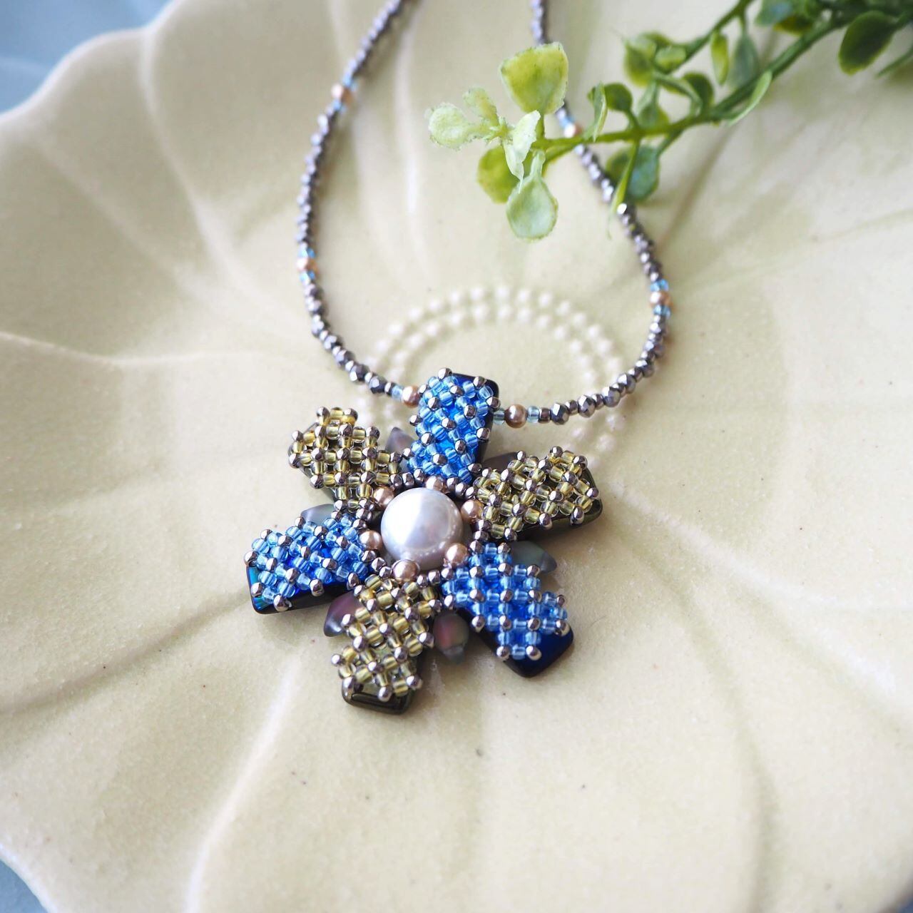 キャリアビーズという2ホールのビーズの上に飾りをつけています。
