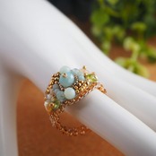 丸いアマゾナイトを刺繍で並べます 繊細でかわいい仕上がりになります